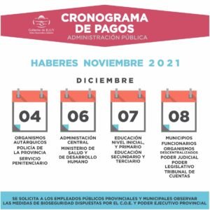 Tesorería de la Provincia dio a conocer el cronograma de pagos correspondiente al mes de noviembre 2021.