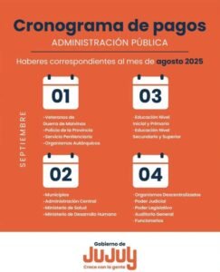El Gobierno de la Provincia de Jujuy, informó el cronograma de pagos para el personal de la Administración Pública.