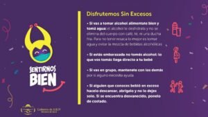 - Si va a consumir alcohol, no conduzca; aliméntese bien y tome agua.