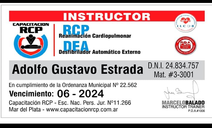 Además anticipó que volverá a dictar sus cursos de Reanimación Cardiopulmonar (RCP) en diversas Instituciones Públicas y Privadas.