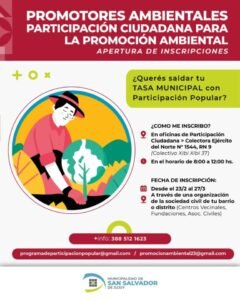La Municipalidad de San Salvador de Jujuy abrió la inscripción para el programa “Promotores Ambientales” 2026.