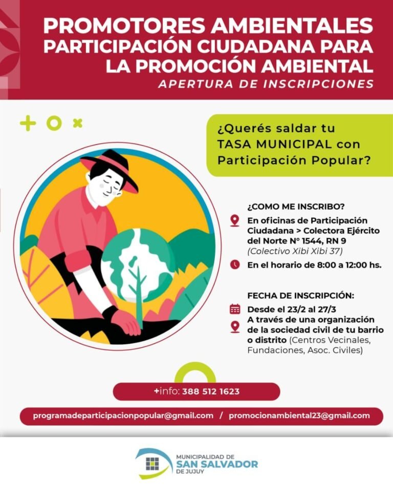 El programa “Promotores Ambientales” es una oportunidad para que los vecinos se involucren en la protección del medio ambiente y contribuyan a mejorar la calidad de vida en la ciudad. La Municipalidad invita a todos los interesados a inscribirse y ser parte de esta iniciativa.