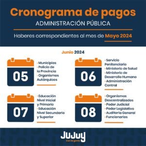 Cronograma de pagos de la Administración Pública 23 mayo, 202423 mayo, 2024 Facebook Twitter WhatsApp Escuchar Artículo Facebook Twitter WhatsApp