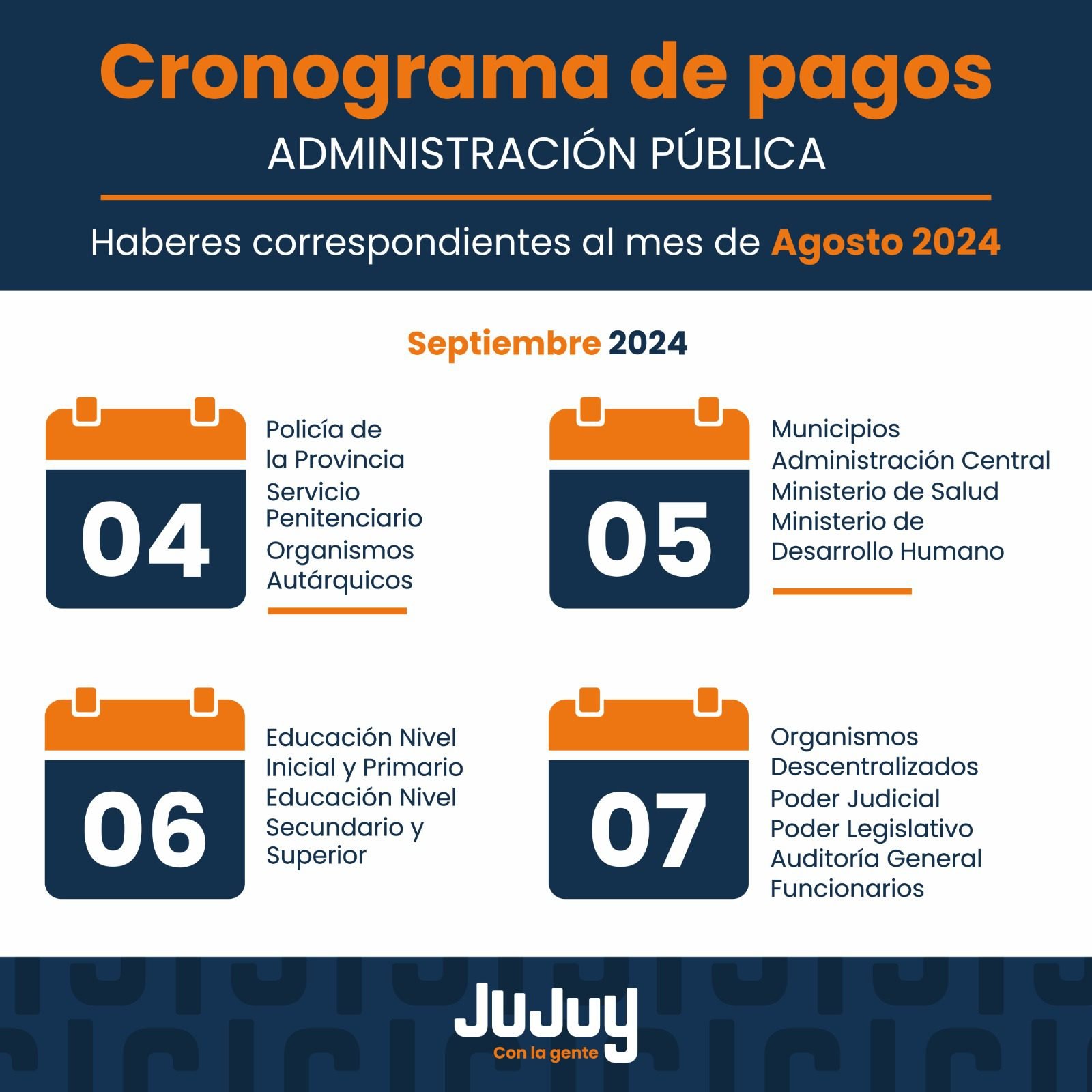 Dieron a conocer el cronograma de pago de la Administración Pública 28 agosto, 2024 Facebook Twitter WhatsApp Escuchar Artículo Facebook Twitter WhatsApp