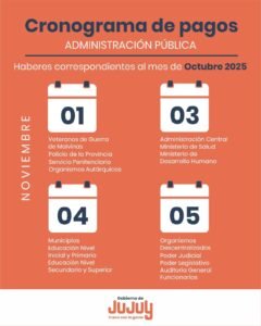 El Gobierno de Jujuy informó el cronograma de pagos de los haberes correspondientes al mes de octubre 2025 para los agentes de la Administración Pública.