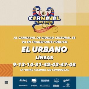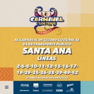 En razón de llevarse a cabo los días viernes 25, sábado 26, domingo 27 y lunes 28 de febrero, el tradicional “Carnaval de los Tekis” y “Carnavalódromo”, en Ciudad Cultural, se ha dispuesto que las líneas de transporte urbano de pasajeros afecten su recorrido llegando hasta el lugar del evento, donde se hallarán las paradas debidamente identificadas.