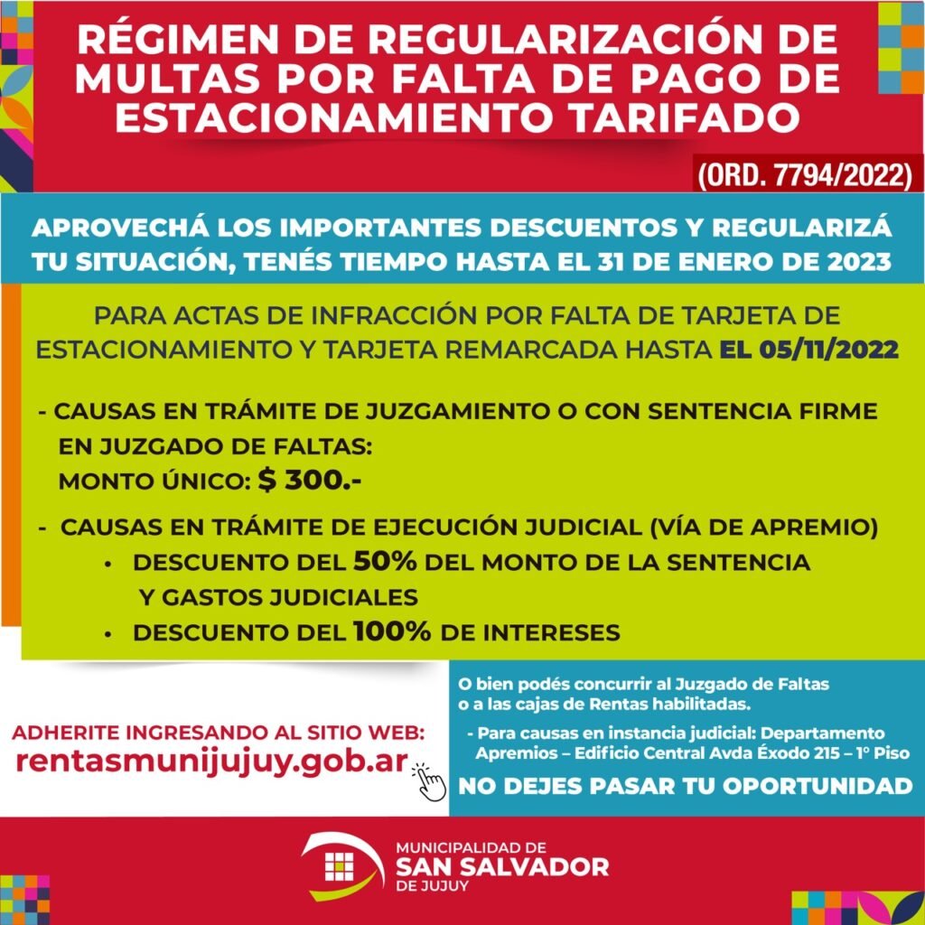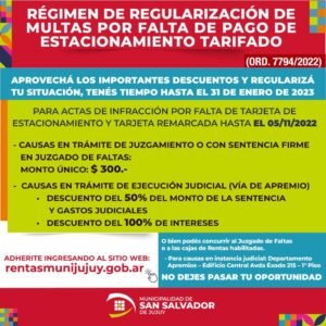 El Municipio Capitalino informó que se prorrogaron las fechas del plazo de Moratoria sobre el Régimen de Regularización de Multas por Faltas de Pago de Estacionamiento Tarifado, hasta el próximo 28 de febrero del 2.023.