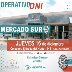 Este jueves 16 de diciembre el camión para tramitar el DNI del Registro Civil llegará al Mercado Sur municipal de San Salvador de Jujuy para que los vecinos de la ciudad puedan efectuar diversos trámites.