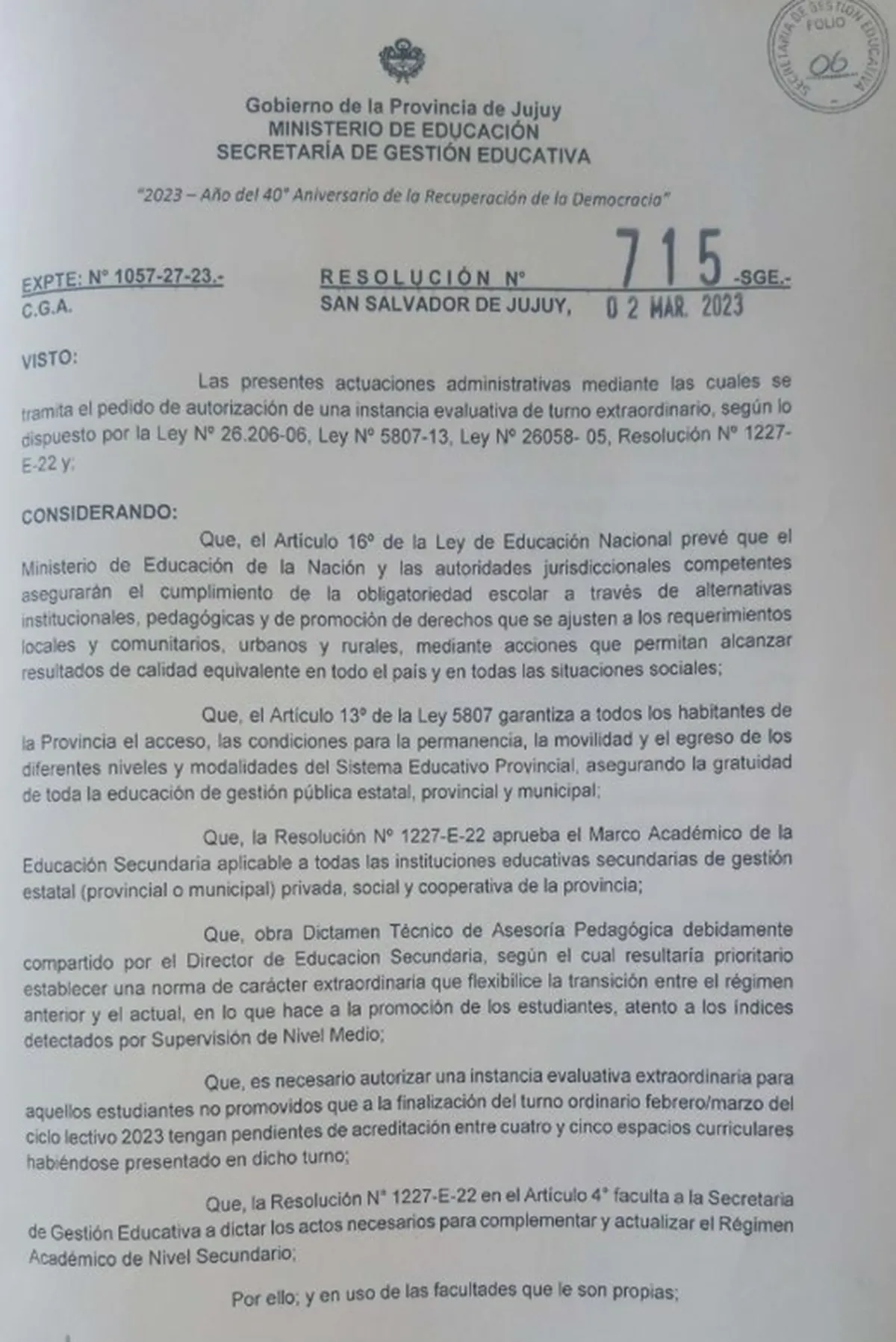 La medida fue tomada por el Ministerio de Educación de Jujuy, donde habilitaron excepcionalmente estas instancias evaluativas, de turno extraordinario, a las Instituciones Educativas de Nivel Secundario de Gestión Estatal y Privado.