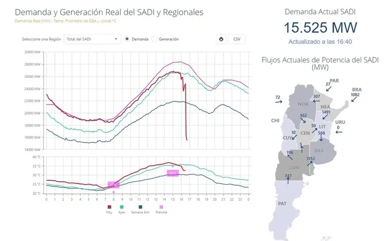 En este sentido, la Secretaría de Energía, informó: “Estaba en 25.000 megas a Nivel Nacional y se cayeron 10.000 megas de repente. Además, se registraron varias fallas en el Sistema Interconectado».