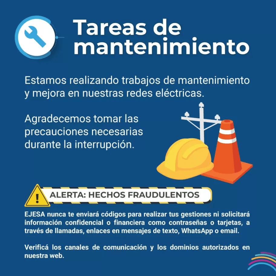 La empresa jujeña de distribución de Energía Eléctrica (EJESA), informó que este martes habrá mejoras y mantenimientos en la red eléctrica, motivo por el cual algunas localidades se quedarán sin luz.
