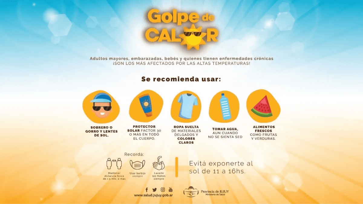 Además, el Referente del SAME, detalló: «La sudoración, la piel caliente, y deshidratación, son los síntomas iniciales cuando el organismo trata de compensar, pero cuando ese estado tiene un aumento notable puede haber problemas neurológicos; en esos casos, la persona puede tener dolor de cabeza, visión borrosa, ardor en los ojos, y presentar irritabilidad.”