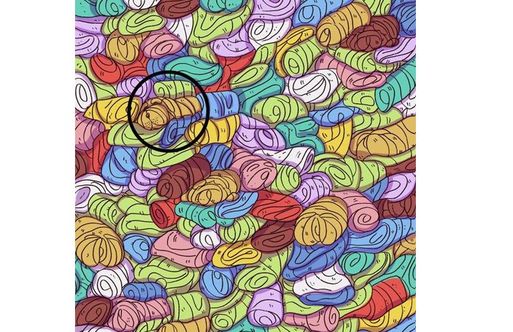 Este reto visual tiene una premisa sencilla, pero de difícil resolución. Sólo hay que encontrar a un cachorro, que se halla oculto entre una gran cantidad de toallones de diversos colores. Pero los pliegues de las toallas hacen que todos parezcan animales acurrucados. Sólo uno es realmente un cachorro, y la diferencia es poco notoria porque te puede llevar un tiempo descubrirlo. Antes de comenzar a mirar la imagen, consulta tu reloj para tomar el tiempo que te lleva encontrarlo.