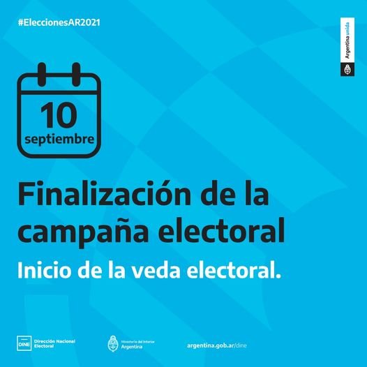 A partir de las 8 de la mañana de este viernes, 10 de septiembre, comenzó a regir en todo el país la veda electoral para las Primarias Abiertas, Simultáneas y Obligatorias 2021 (PASO), y se extenderá más allá del cierre de urnas, de acuerdo a lo establecido en el cronograma del Calendario Nacional Electoral.