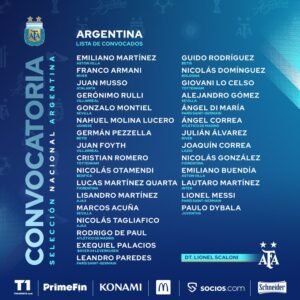 Del armado de la lista por parte de Scaloni se desprenden un par de puntos importantes. Uno: regresa Dybala, quien había arrancado en las primeras llamadas de las Eliminatorias, pero que por distintas dificultades no pudo jugar. Dos: Julián Álvarez y Armani fueron los únicos citados del medio local. Tres: Jerónimo Rulli entró en el lugar de Marchesín. Cuatro: vuelven Juan Foyth y Emiliano Buendía, quienes habían sido desafectados para la Copa América, pero no ocurrió lo mismo con Lucas Ocampos. Cinco: Lautaro Martínez finalmente apareció en la lista. El Toro, la referencia de área titular, no sólo es uno de los que de recibir otra amarilla deberá parar un partido, sino que arrastra una lesión muscular