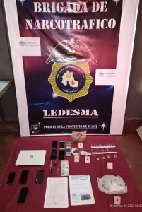 El procedimiento se efectuó en una vivienda del barrio Jardín de la Localidad, donde el Personal Policial secuestró un automóvil, una moto, envoltorios que contenían sustancias ilícitas, $4.000 en dinero efectivo, 8 celulares y balanzas de precisión.