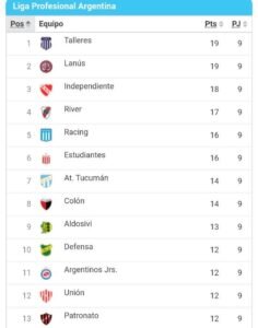 Talleres y Lanús son los dos líderes de la Liga Profesional de fútbol al término de la 9a jornada. El fin de semana habrá fecha pese a las Eliminatorias.