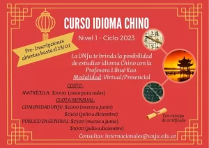Este martes 28 de febrero, finaliza la preinscripción para el “Curso de Idioma Chino 2.023” que dicta la Universidad Nacional de Jujuy (UNJu), por sexto año consecutivo, a través de la Subsecretaría de Internalización e Integración Regional (SubSIIR).