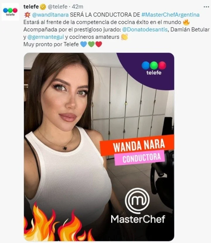 Así mismo, el próximo lunes 20 de marzo, se presentará el programa “MasterChef” con Wanda Nara como conductora, en el canal de Telefe. El debut se realizará a las 21:30hs.
